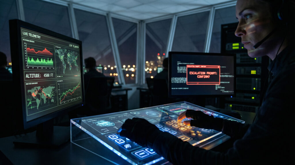 As drone operations become more automated, the role of the human operator evolves. The question is not whether humans remain involved, but how their authority is structured within an increasingly automated operational environment. Human-in-the-loop (HIL) design preserves human authority at defined decision points while allowing automation to handle routine tasks. The boundary between automated and human-authorised actions is explicit, documented, and auditable.